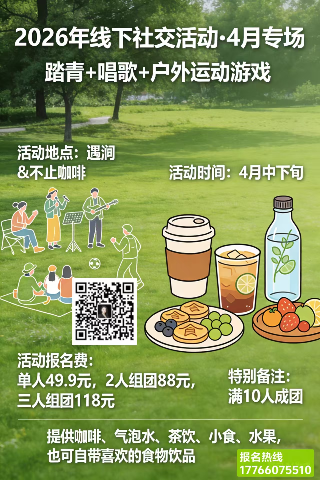 【同城脱单】4月溧水社交局|踏青+K歌+游戏,解锁春日交友新玩法,让我们在遇涧-遇见你!